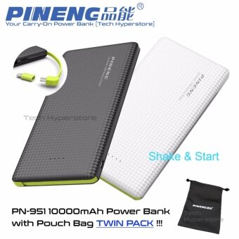 Shop (BUNDLE) 2 Units Pineng PN-951 10000mAh Power Bank (Black and White) with 2IN1 Built-In Cable and Pouch Bag in Malaysia